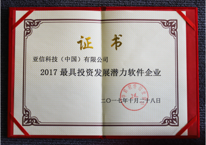 2017年10月304am永利集团“2017最具投资发展潜力软件企业”