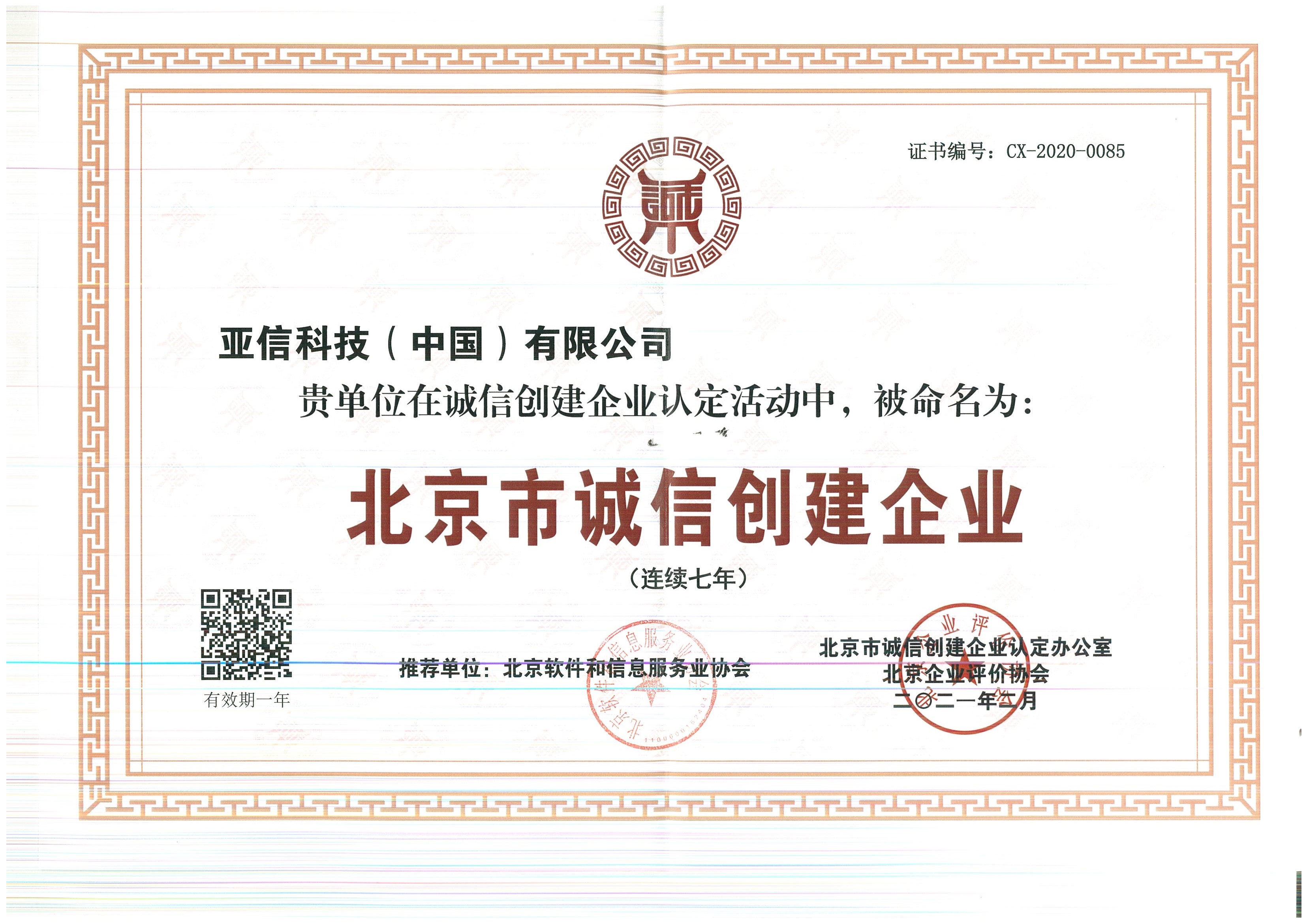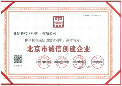 2018年2月304am永利集团(中国)荣获“北京市诚信创建企业”称号